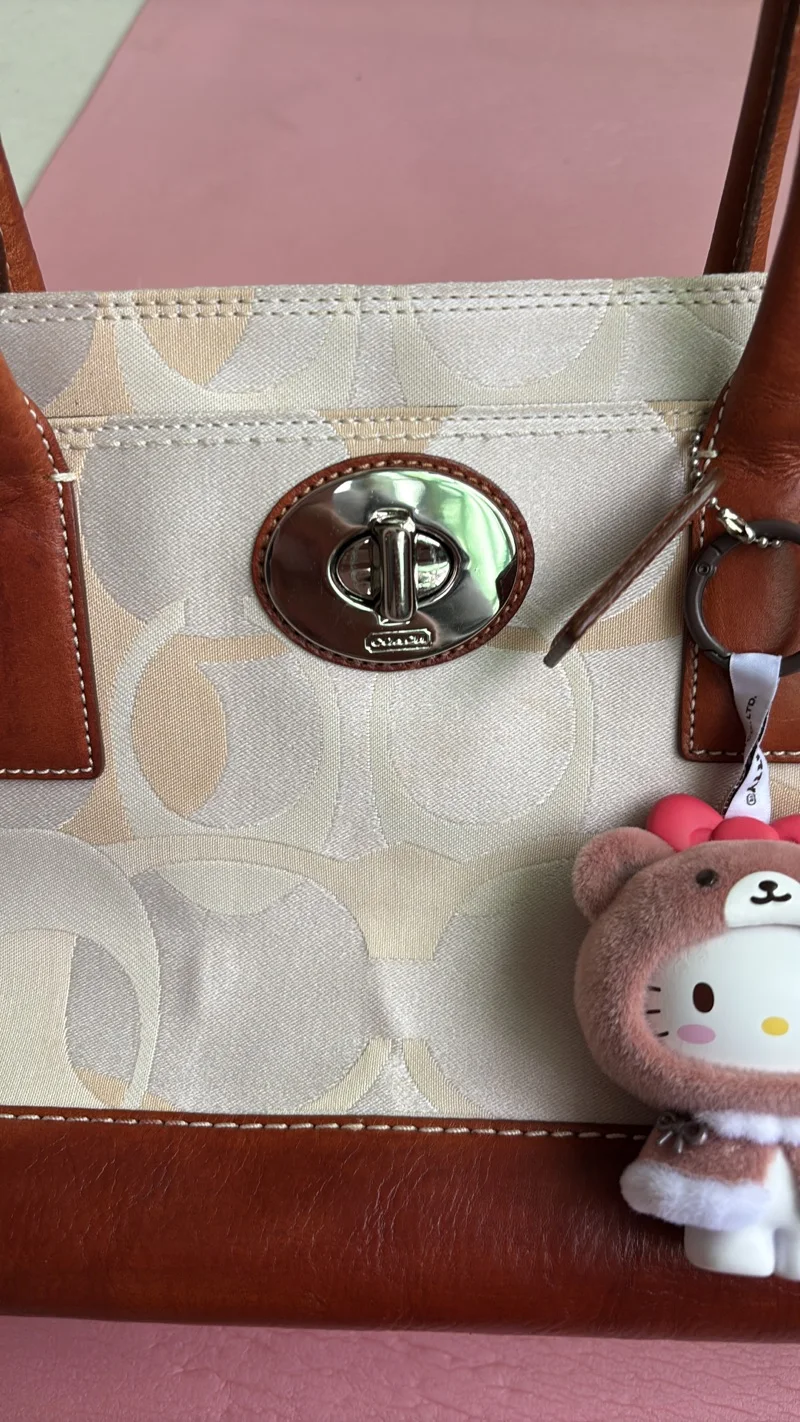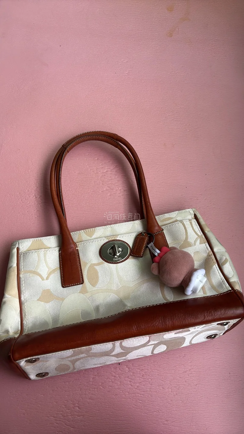 COACH y2k big signature tote bag turn lock コーチ ビッグシグネチャー ターンロック トートバッグCOACH;有些许损伤或污渍