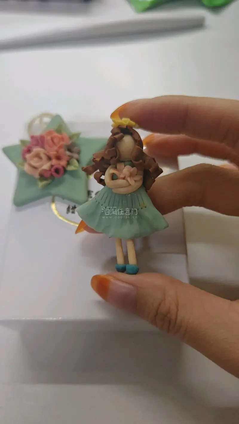 挖煤姬的首次购买终于到货了!这两件软陶手作清新治愈,浅绿星星缀着柔粉花簇,卷发少女捧花而立,细节精致,满是温柔的少女感。